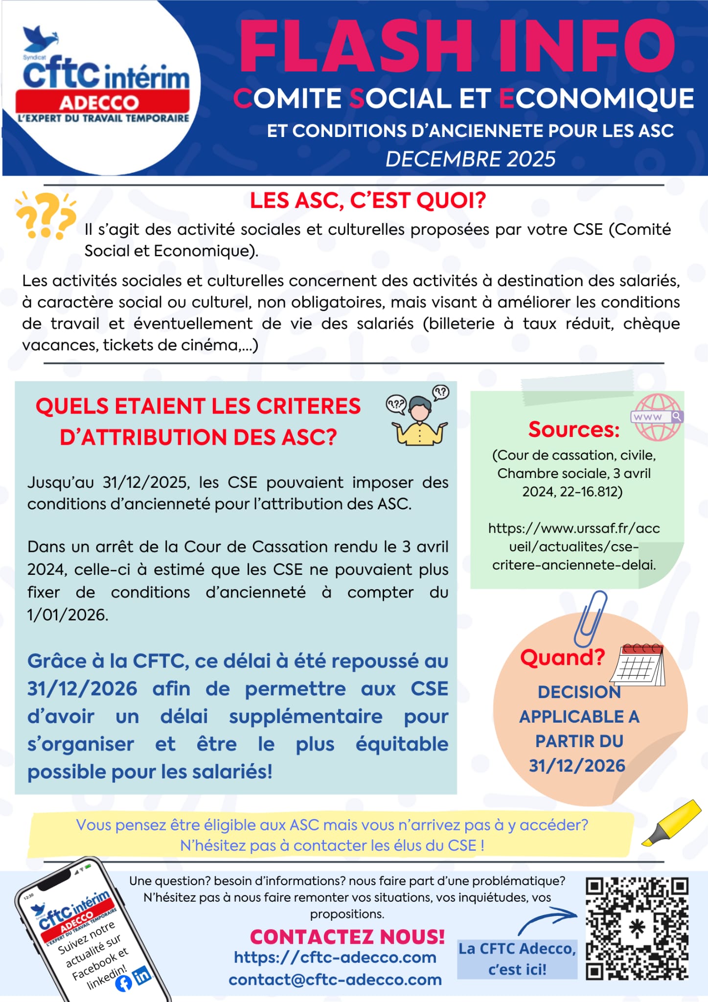 Newsletters & archives Newsletters & Flashs — 2025 Cliquez sur une vignette pour ouvrir l’image en grand. Utilisez le filtre ou la recherche. Tous Newsletters Flashs Newsletter 1 — 2025 Février 2025 Newsletter Newsletter 2 — 2025 Avril 2025 Newsletter Newsletter 3 — 2025 Juillet 2025 Newsletter Newsletter 4 — 2025 Novembre 2025 Newsletter Flash info — Août 2025 Août 2025 Flash Flash info — Canicule 2025 Août 2025 Flash Flash info — ASC Décembre 2025 Flash Flash info — Ce qui change au 1er janvier 2026 Décembre 2025 Flash Lire aussi Flash INFO Activités sociales et culturelles : vos droits, sans condition d’ancienneté La newsletter CFTC Adecco du 2e trimestre Alerte canicule : travail en intérim, vos droits & protections La newsletter CFTC Adecco du 4e trimestre